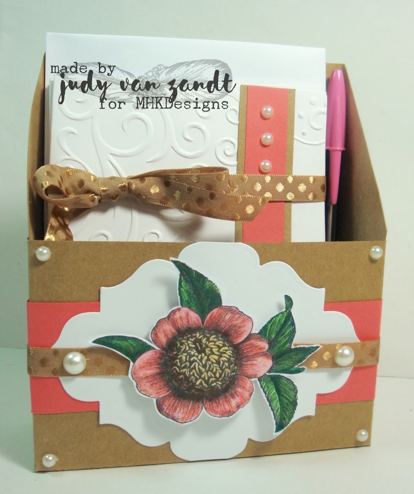 I used a die cut label, ribbon and pearls to embellish the box.