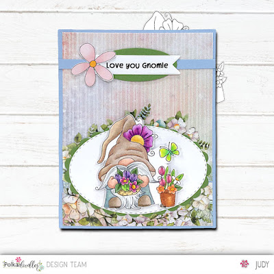 I have used Spring Plants Gnome and colored with Prismacolor Pencils. The background paper is from
