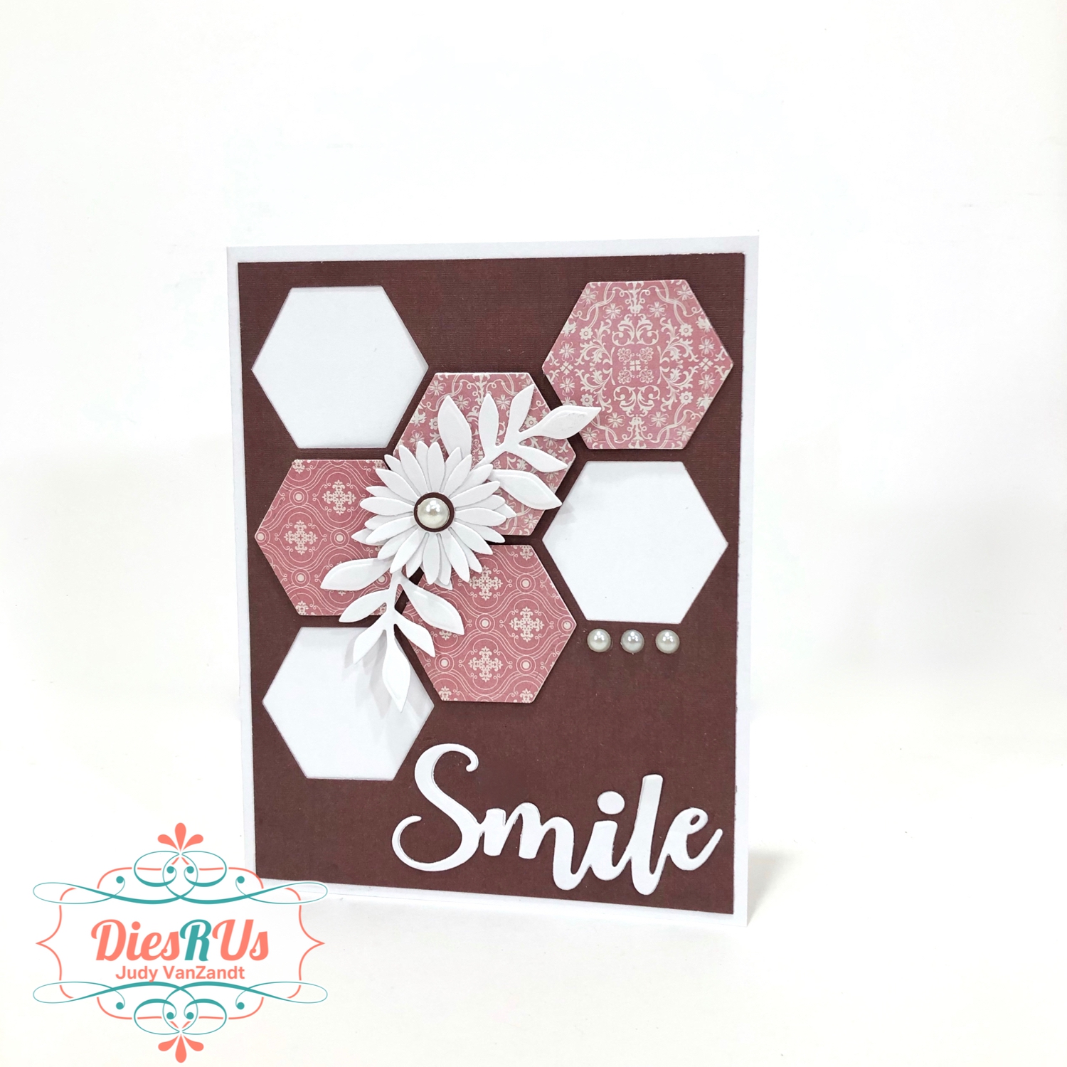 Die cut 3 hexagons into the burgundy card stock using the negative.